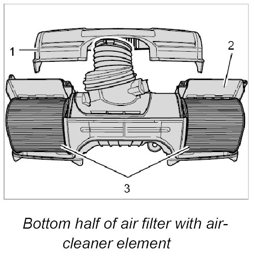 2.2. Lift off top half of air filter -1-.
