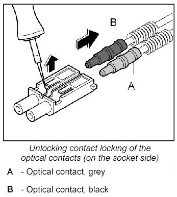 INFORMATION: Observe the general information on optical waveguides. - General information on optical waveguides - MOST bus.