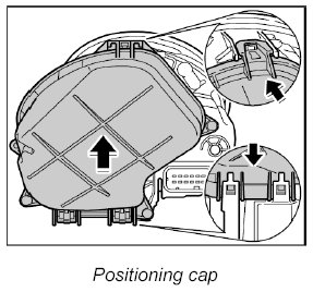 2. Release cap once at the top and twice at the bottom -a- and remove from the main headlight.