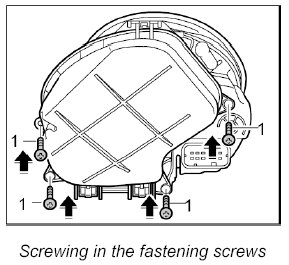 2. Screw in four fastening screws -1- for the cap.