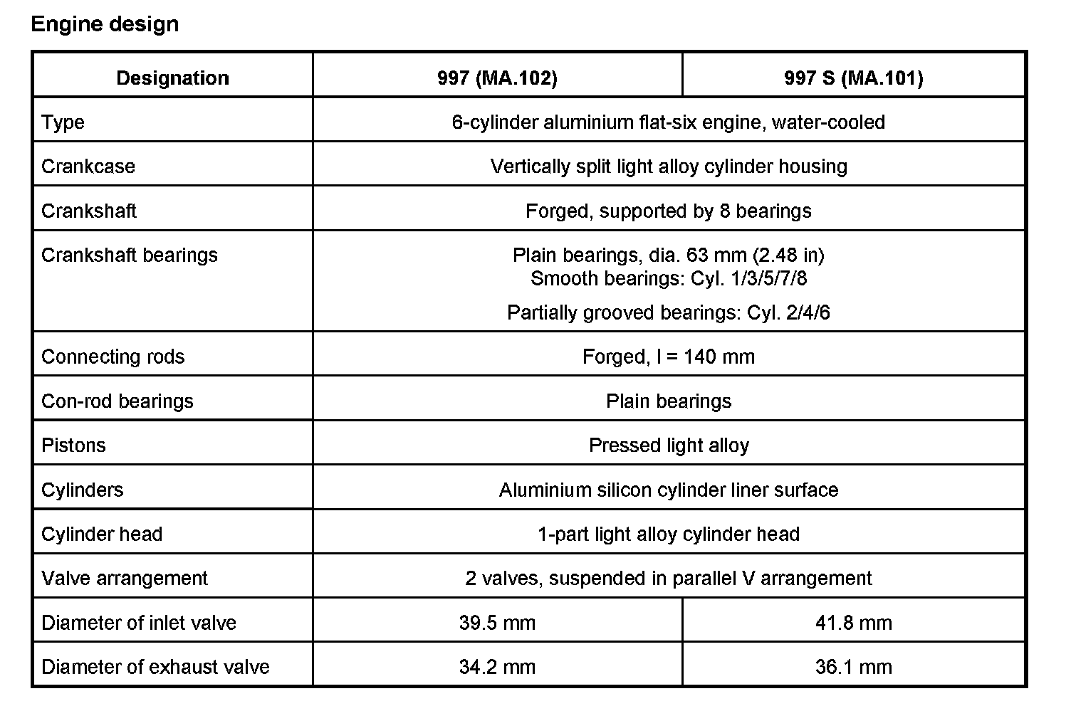 Technical data on engine
