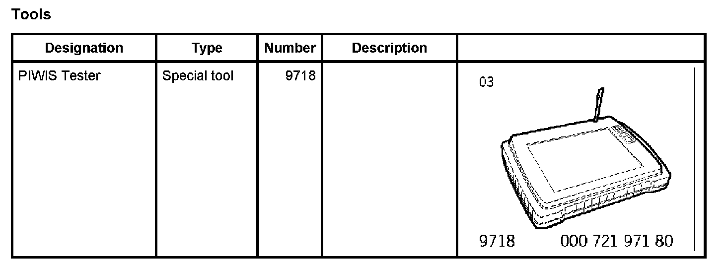 The procedure described here has been structured in general terms; different text or additions may appear in the PIWIS Tester 9718.
