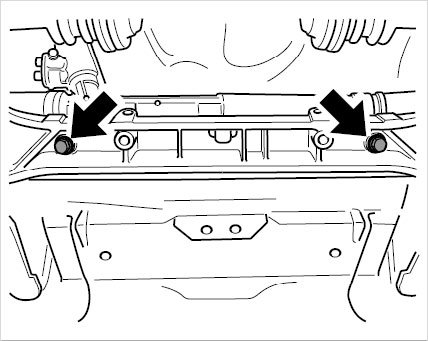 3. Loosen anti-roll-bar mount -arrows- and allow anti-roll bar to hang.