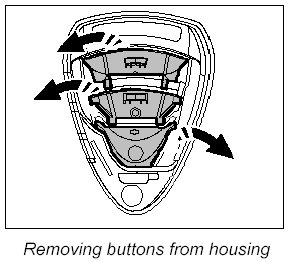 4. Lift up buttons (two or three, depending on the vehicle type) and pull them out of the remote control housing.