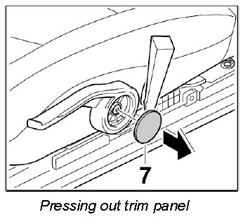 3. Pull out control part trim panel 2 from the cushion in direction of arrow.