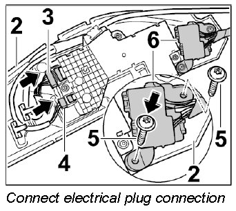 1. Position tip switch 6 on the control part trim panel 2 and screw down with the fastening screws 5. Plug in electrical plug connection 3 and 4.