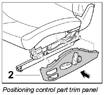 2. Insert control part trim panel 2 into the cushion in direction of arrow.