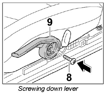 3. Position lever 9 on seat, screw down fastening screw 8. Tightening torque: 4.5 ftlb.
