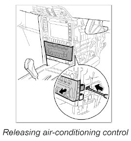 1. Using a screwdriver, press the side holder to the left and right and pull out the air conditioning control from the installation slot.