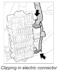 2. Clip in electric plug connection at the fuse box.
