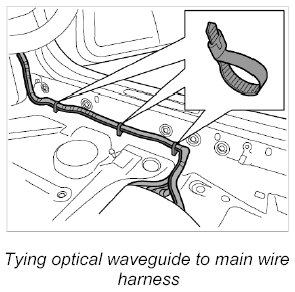 2. Route the new optical waveguide along the main wire harness, guide it through the existing cable ducts and tie it to the main wire harness using tie-wraps.