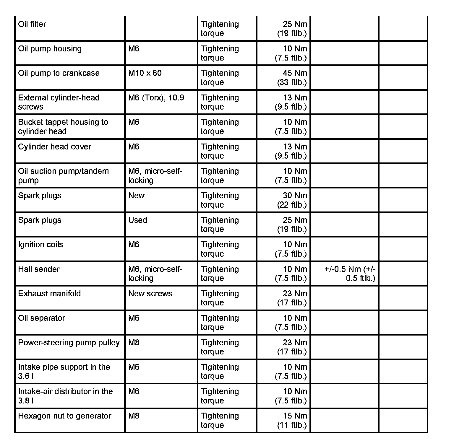 Tightening Torques