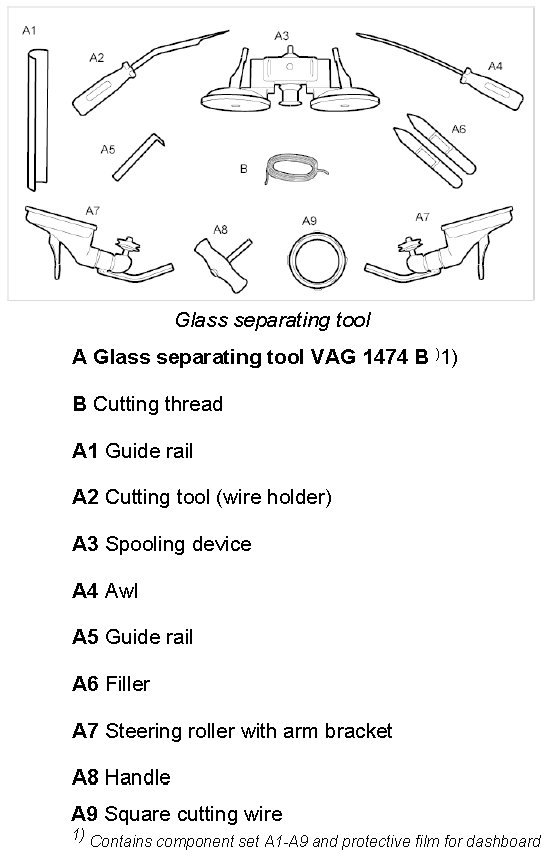 - The following instructions describe the general procedure for removing car windows with the glass separating tool VAG 1474 B.
