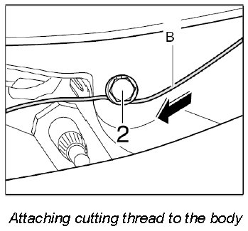 3. Attach cutting thread -B- firmly with the clamping screw -3-.