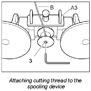 2. Insert cutting thread -B- into the bore on the spooling device -A3-.