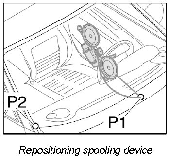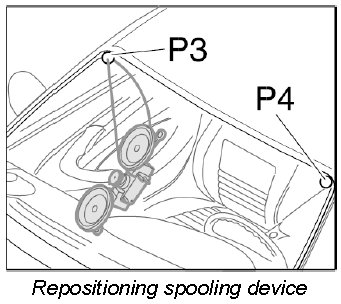 5. Draw cutting thread -B- approx. 1m into the passenger compartment.