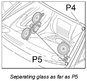 5. Separate glass by spooling the cutting thread on the spooling device as far as point -P2-.