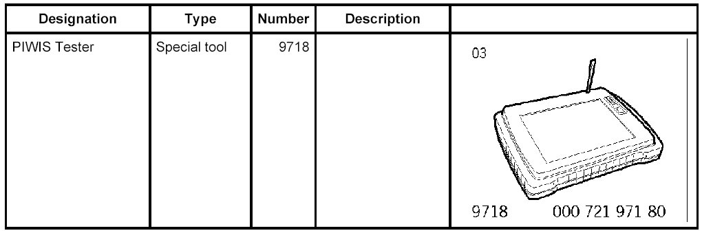 PIWIS Tester 9718 with test software version 21.000/04/2008 (or higher)