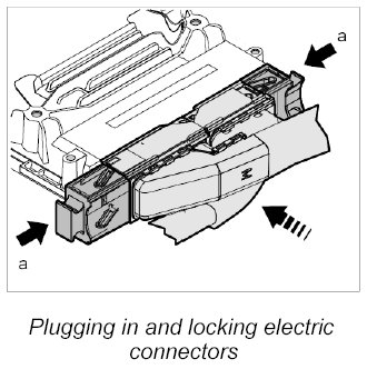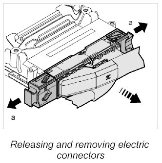 6. Release the two electric connectors -a- and pull them off the DFI control unit.