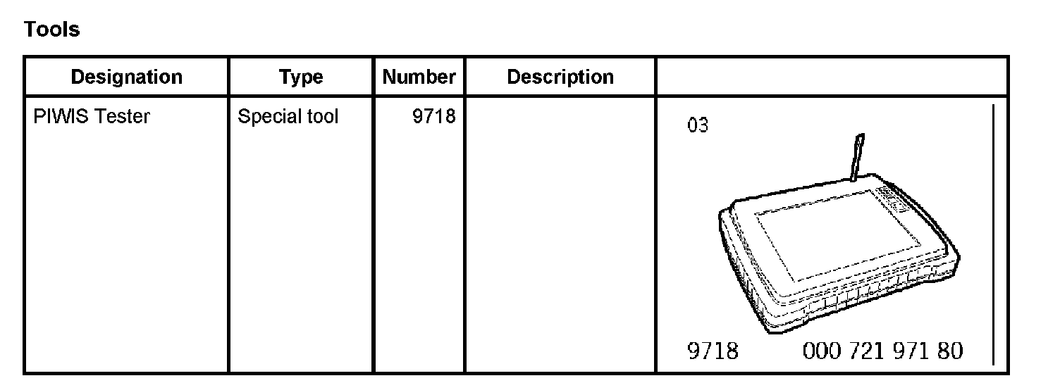 The procedure described here has been structured in general terms; different text or additions may appear in the PIWIS Tester 9718.