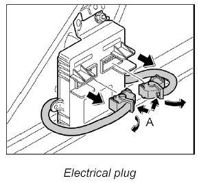 3. Release and unplug both electric connectors -A- and disengage the left and right electric lines on the control unit.