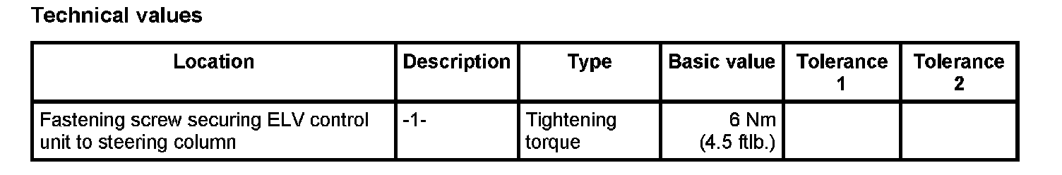 3. Unscrew the fastening screw -1- on the ELV control unit until the fastening screw -1- connects with the steering column. - Tightening torque: 6 Nm (4.5 ftlb.)
