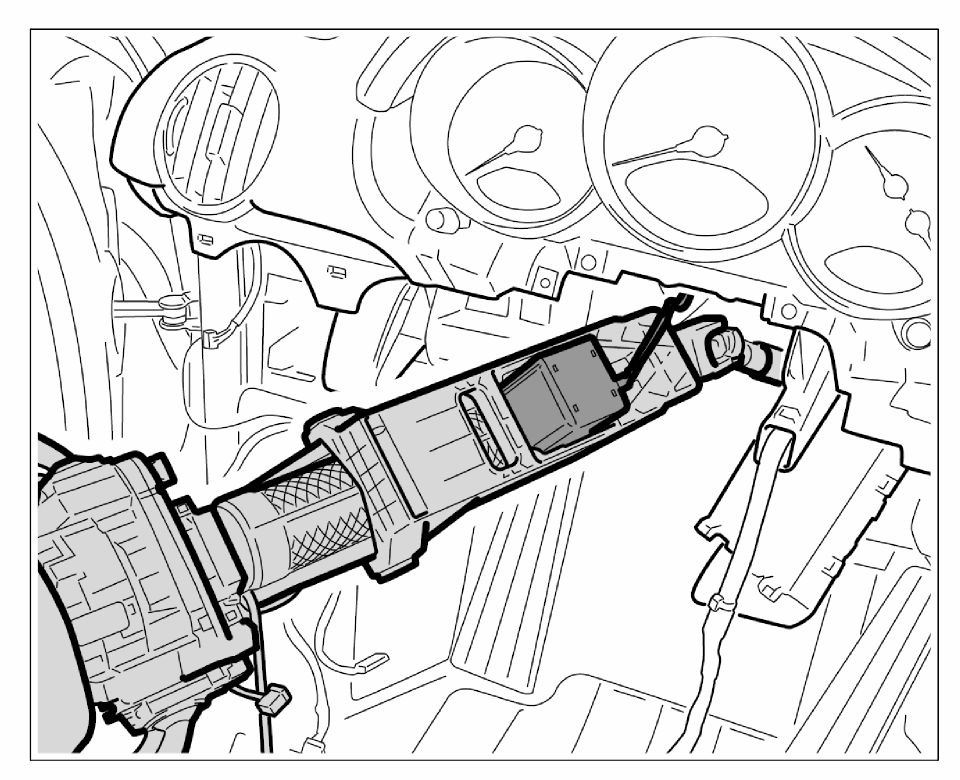 The ELV control unit is engaged in the steering column and is clamped securely with a fastening screw.