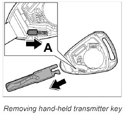 1. Push the sliding latch back using a small screwdriver -arrow A- and pull the key out of the bottom part.