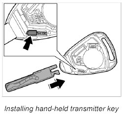 1. Push the key into the bottom part until the sliding latch -arrow- engages perceptibly.
