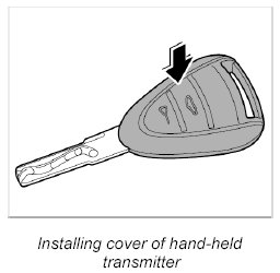 1. Position the cover on the bottom part of the hand-held transmitter and press together until the cover clicks into place.