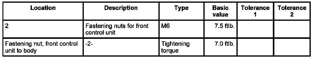 1. Insert the front control unit into the body and secure with the fastening nut -2-. - Tightening torque: 7.0 ftlb.