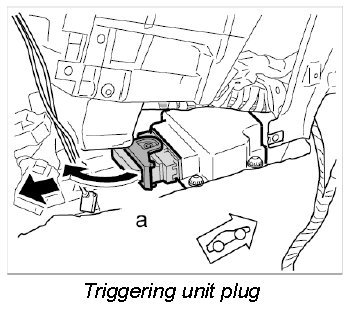 - The airbag triggering unit must not be removed with the connector still plugged in.