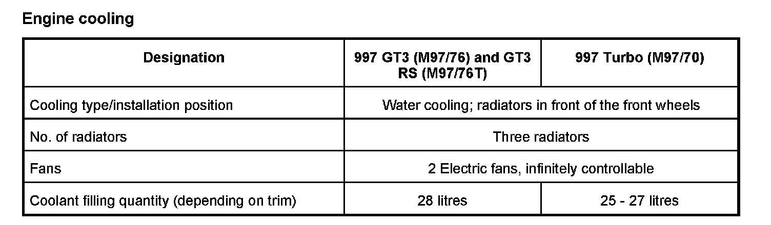 Technical data, engine cooling