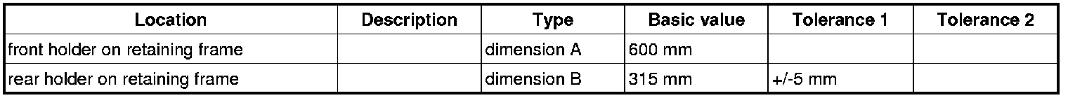1.3. Align holder -3- on retaining frame -2- with => dimension A: 600 mm and the=> dimension B: 315 mm+/-5 mm.