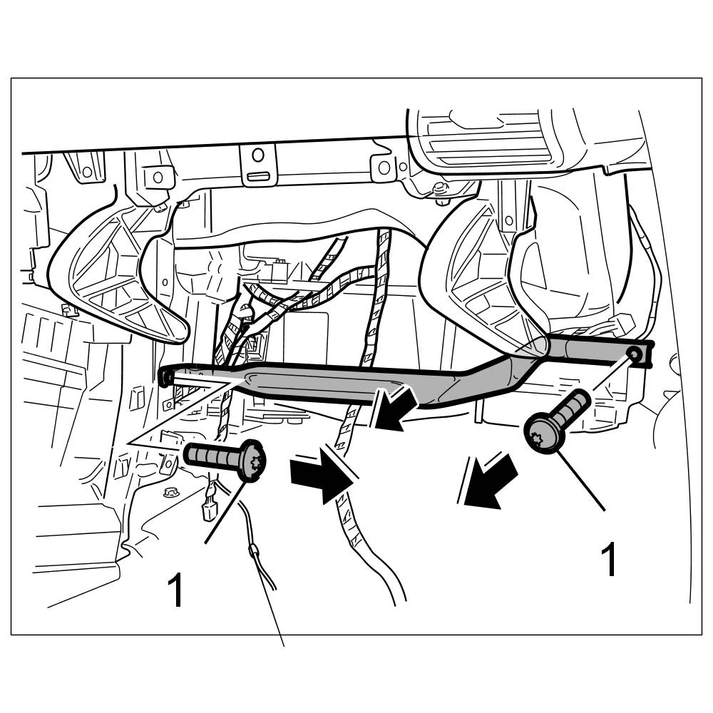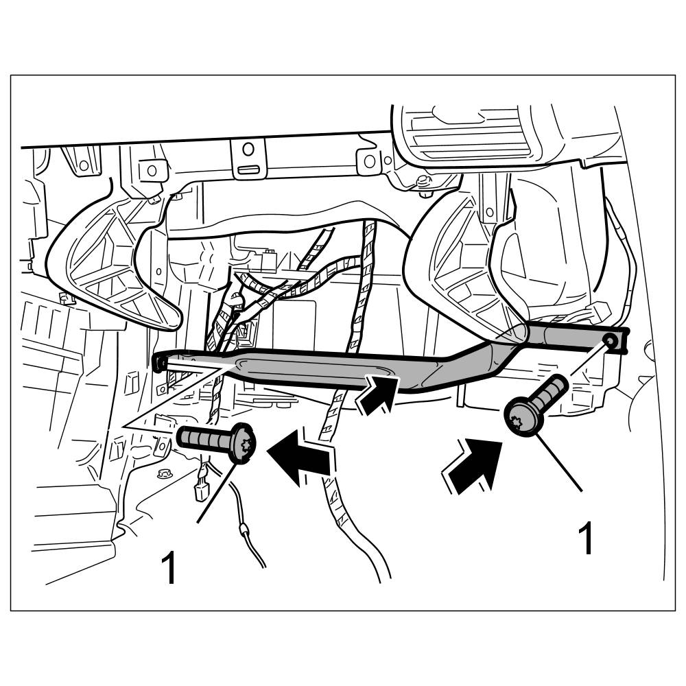 4. Install support strut and tighten with the two fastening screws -1-.