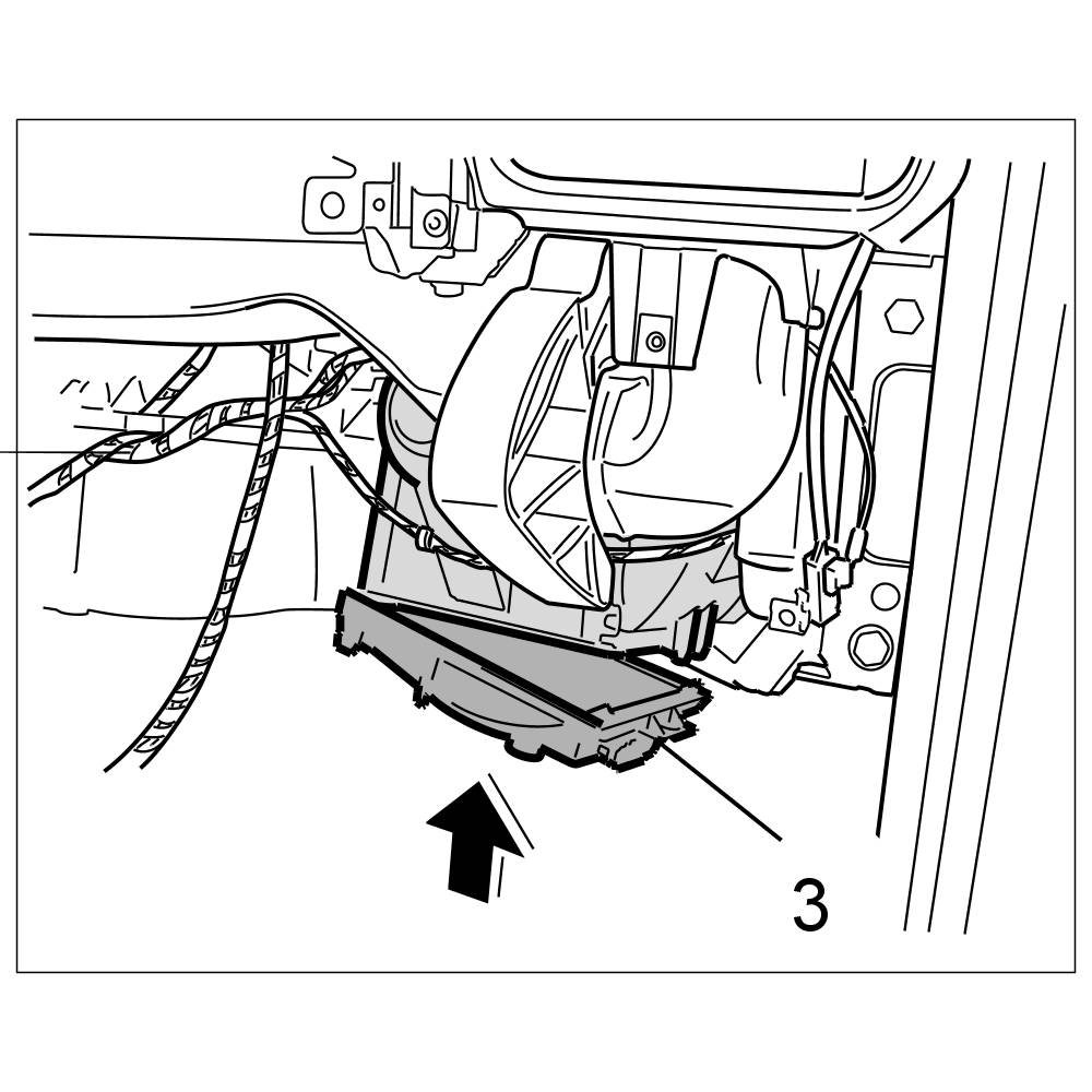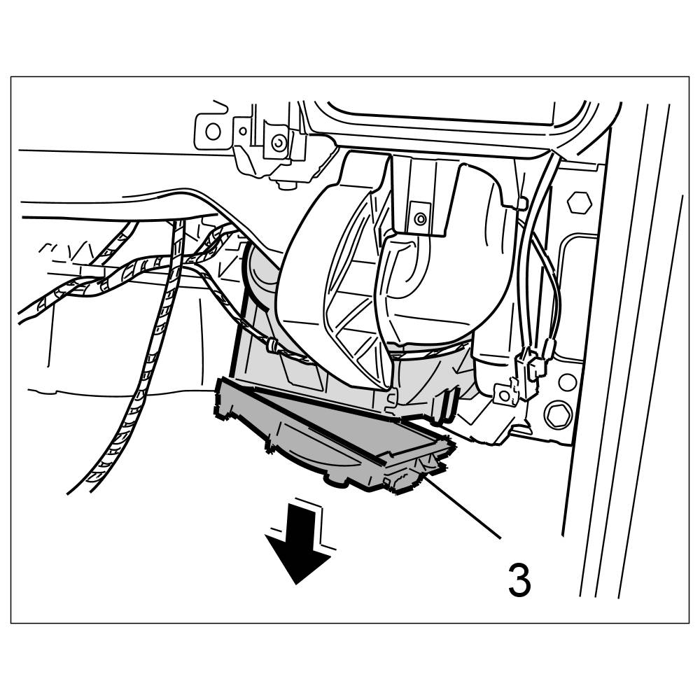 4. Remove the cover -3- for the blower motor and pull out the blower motor downwards.