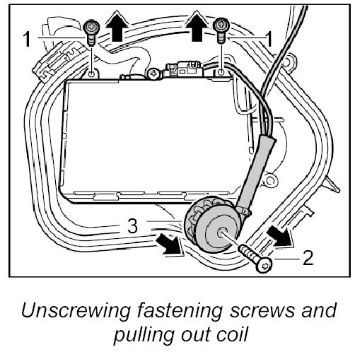 1. Unscrew the fastening screw -2- for the coil and pull the coil -3- out of the cap.
