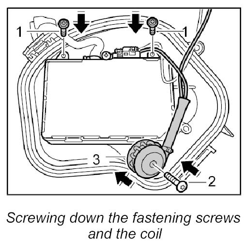 3. Push on the coil and screw it down with the fastening screw.