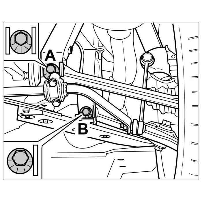 - Measure from road contact surface to hexagon-head bolt on cross-member threaded connection to the body.
