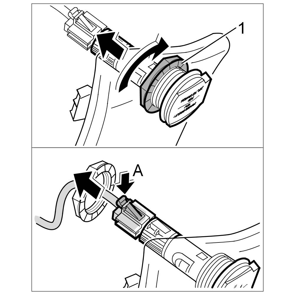 2. Unlock electrical plug -A- and pull from the socket.