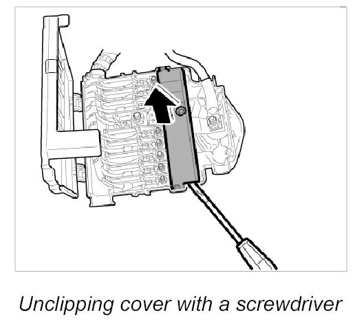 1. Unclip the cover for the fuse elements with a screwdriver.