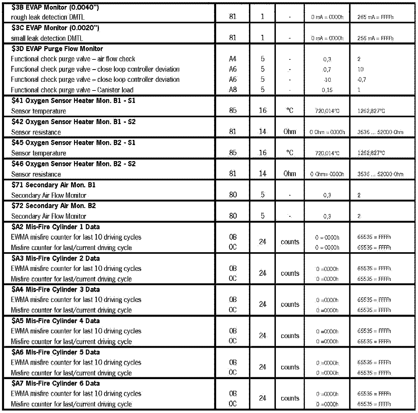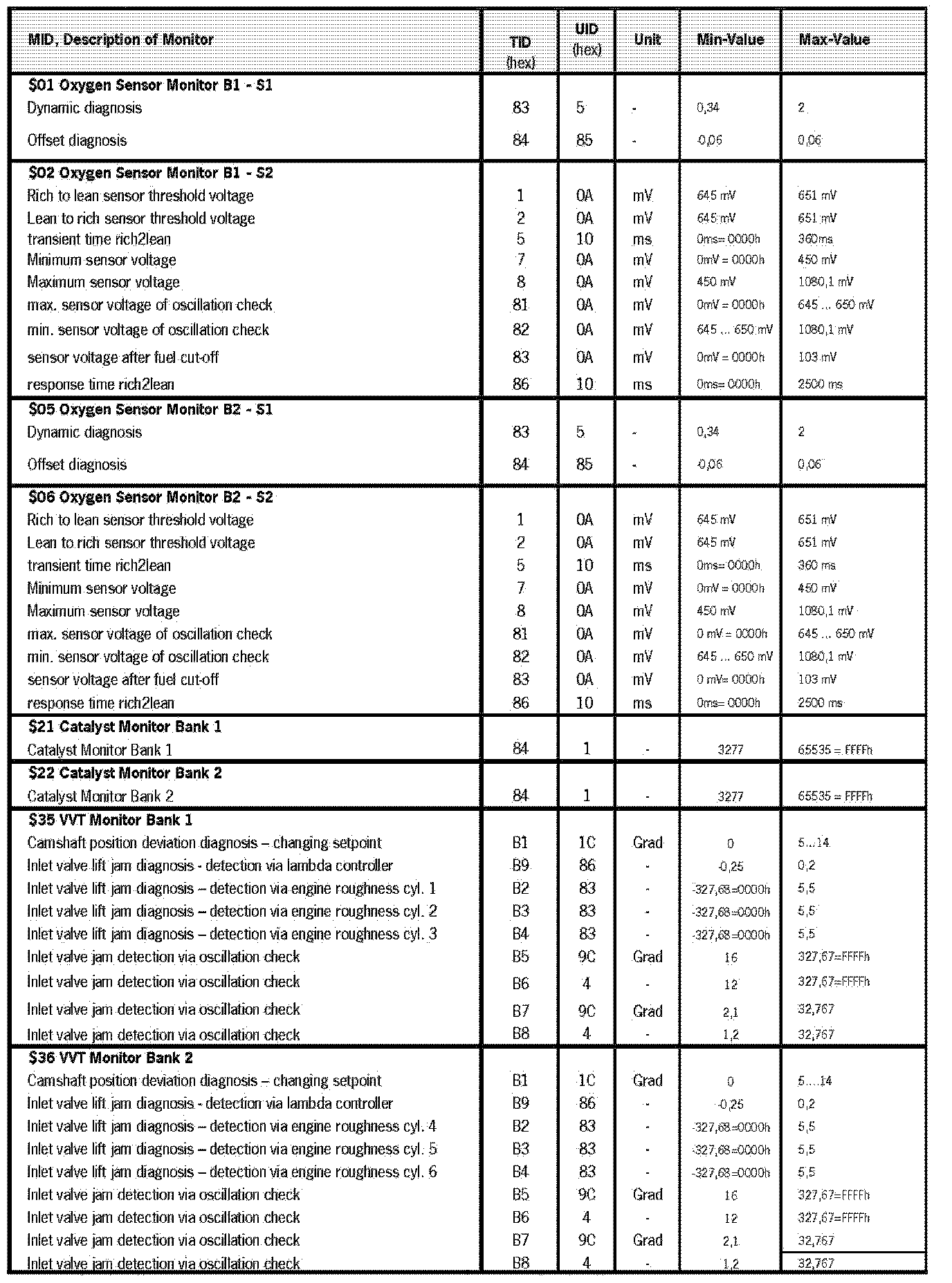 Mode 6 (Protocol ISO 15765-4) - 987 MY 09 Pst. C463