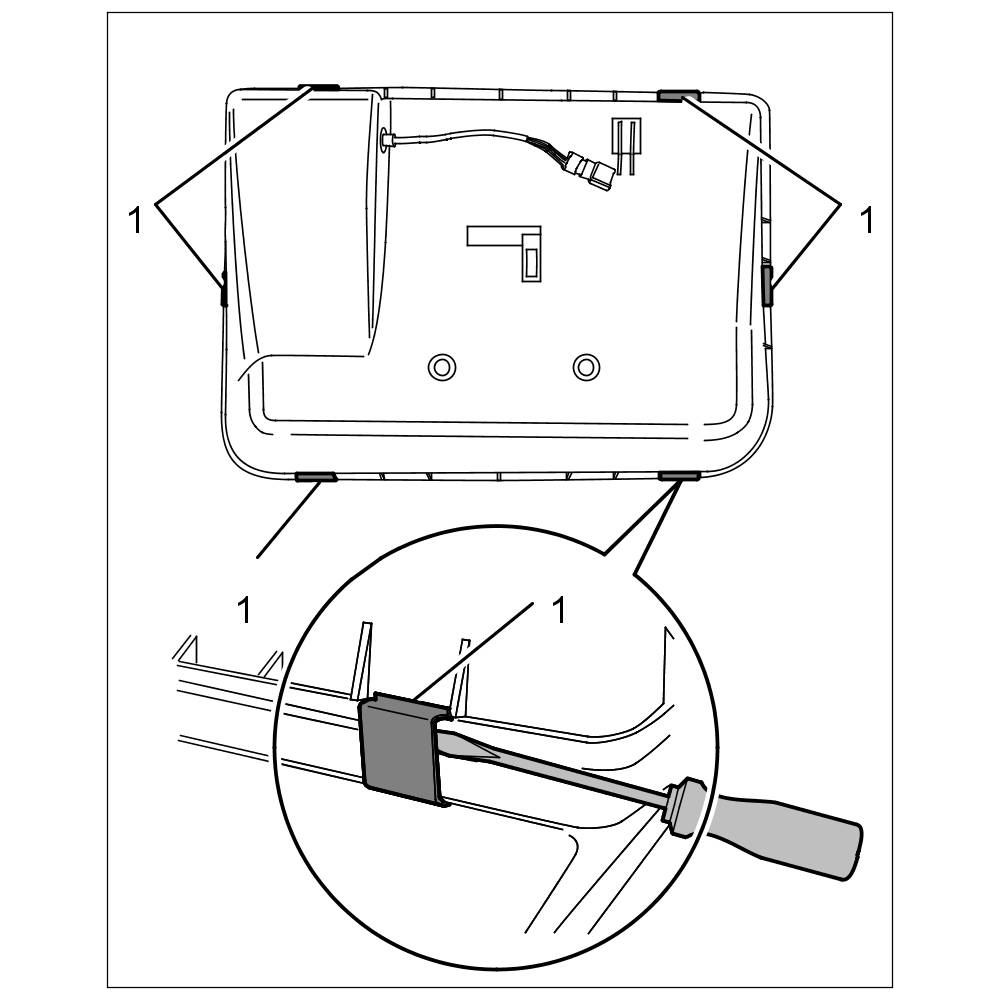 1. Unclip sheetmetal clips -1- on carbon canister with a screwdriver.