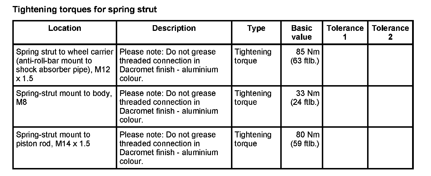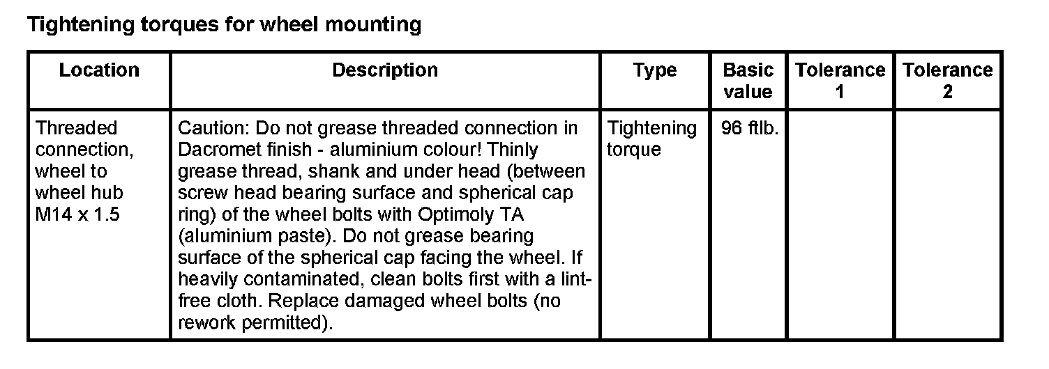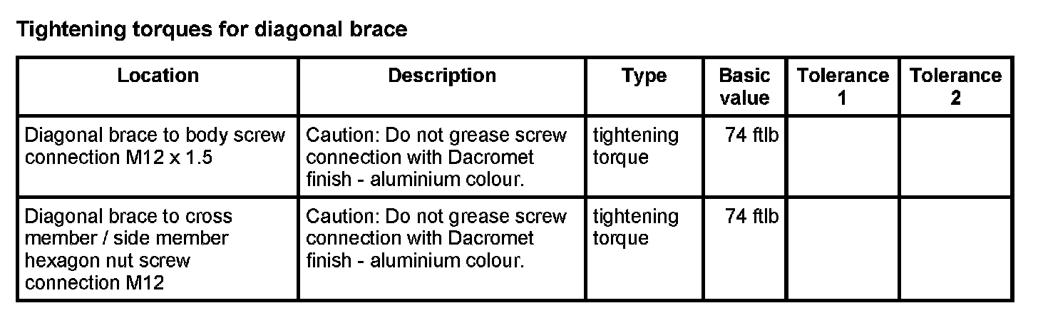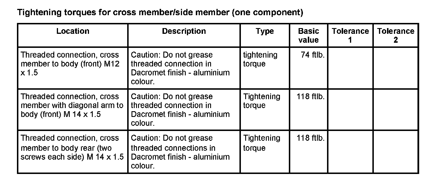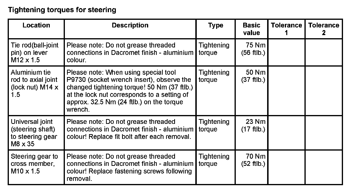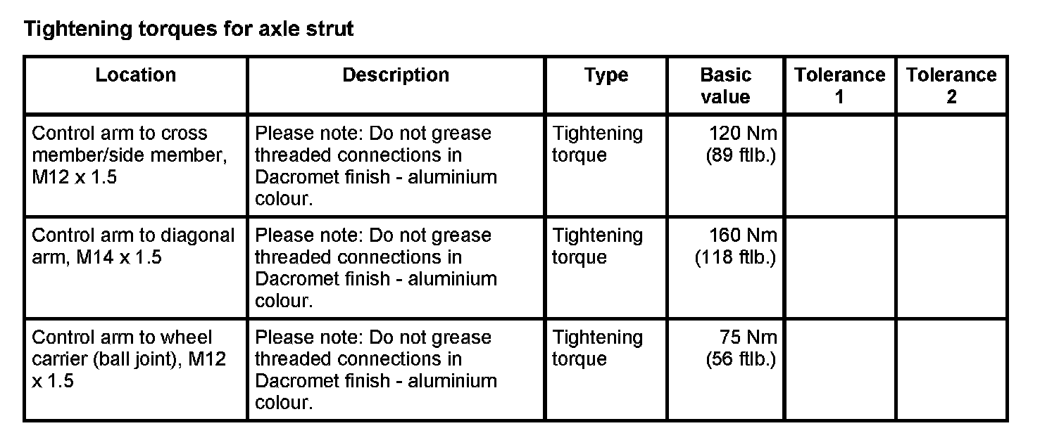 WM 400000 Tightening torques for front axle