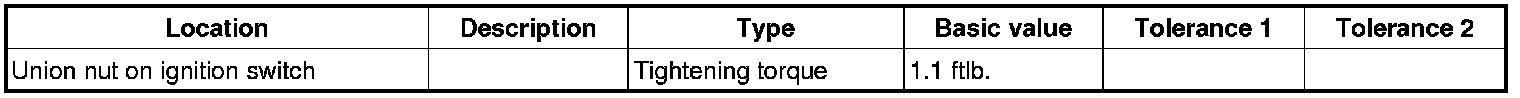 2. Position ignition switch in the instrument panel from below. Position union nut, re-adjust switch and tighten union nut using wrench T10152. => Tightening torque: 1.1 ftlb.