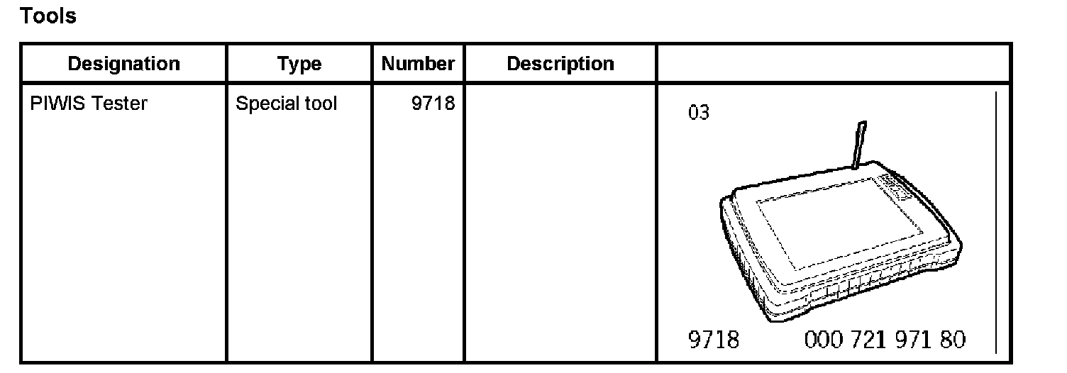The procedure described here has been structured in general terms; different text or additions may appear in the PIWIS Tester 9718.