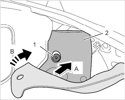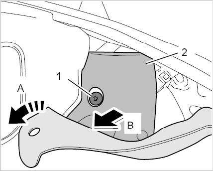 1.2. Close the locking bar -2- (-arrow B-) until it engages securely.
