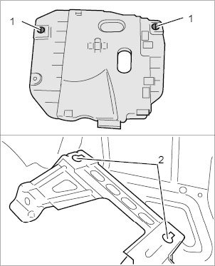 2.1. Place transmission control unit (PDK) and holder in installation position. Make sure that the clips -1- engage correctly in the guides -2-.