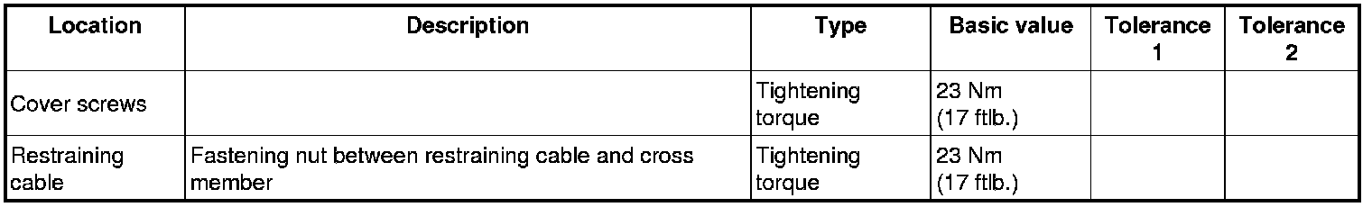 4. Unscrew fastening nuts for restraining cables and remove restraining cables from cross member.