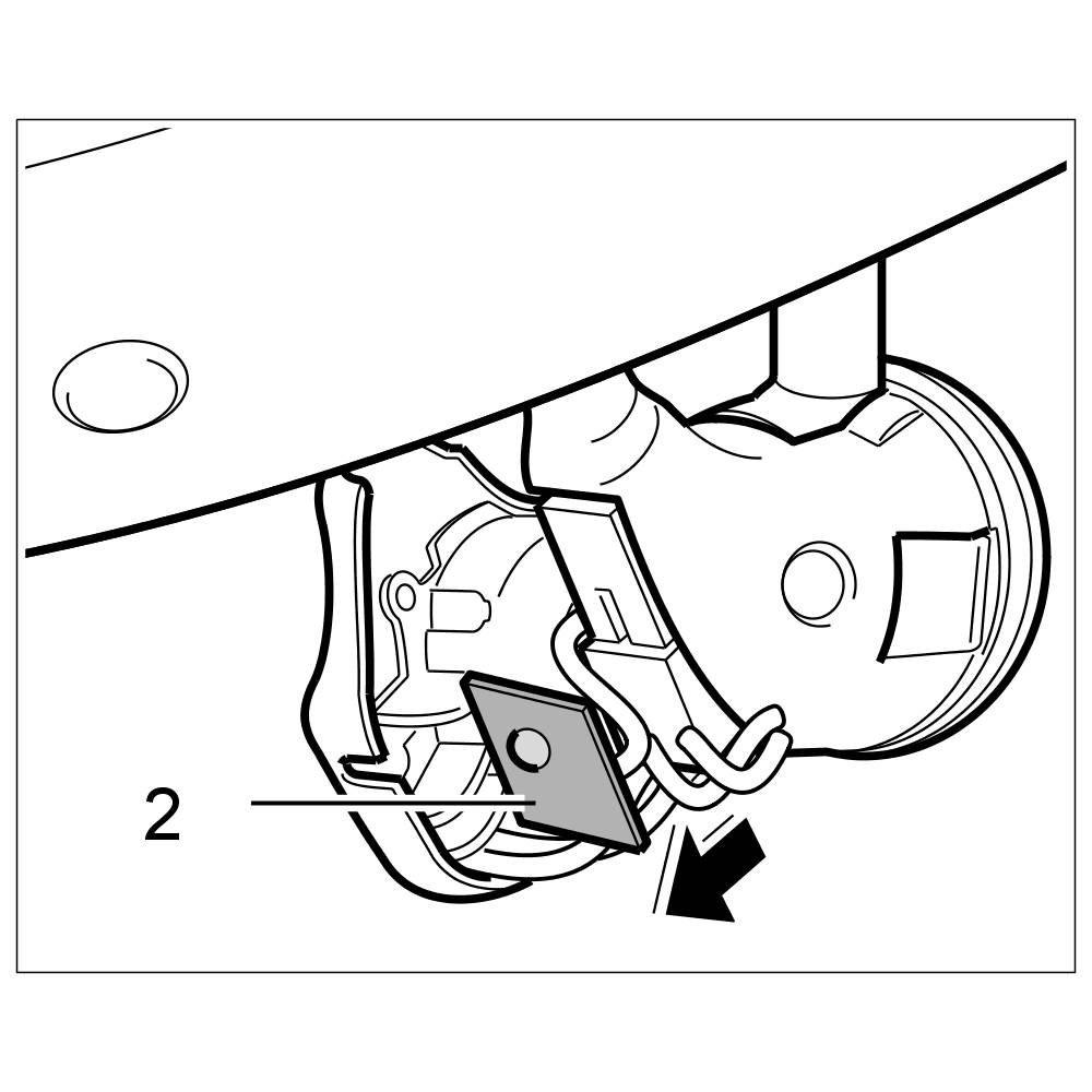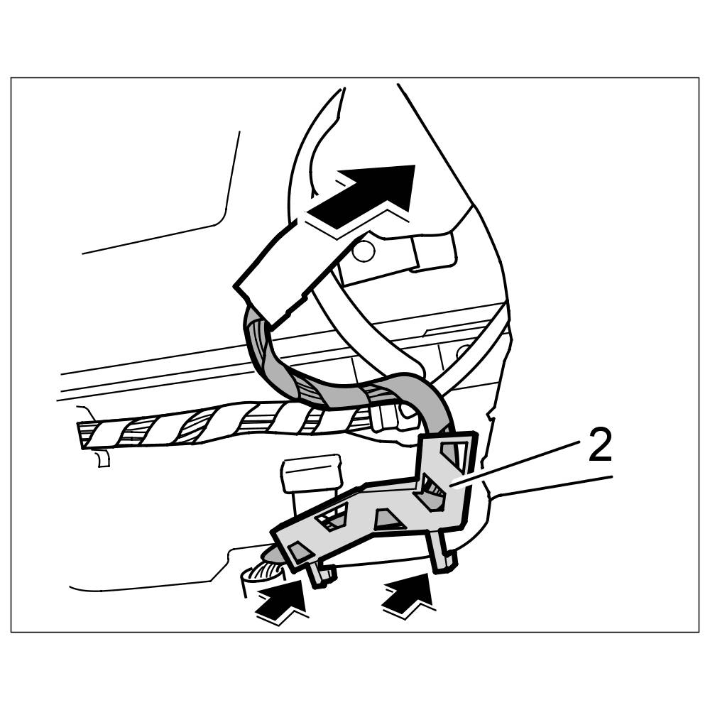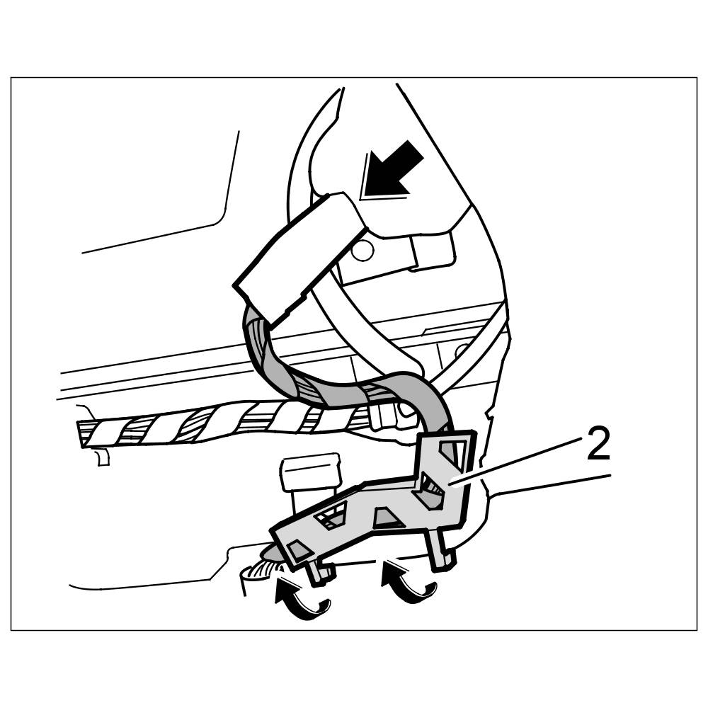8. Engage holder -2- for the electric line and push line in behind the roof liner.